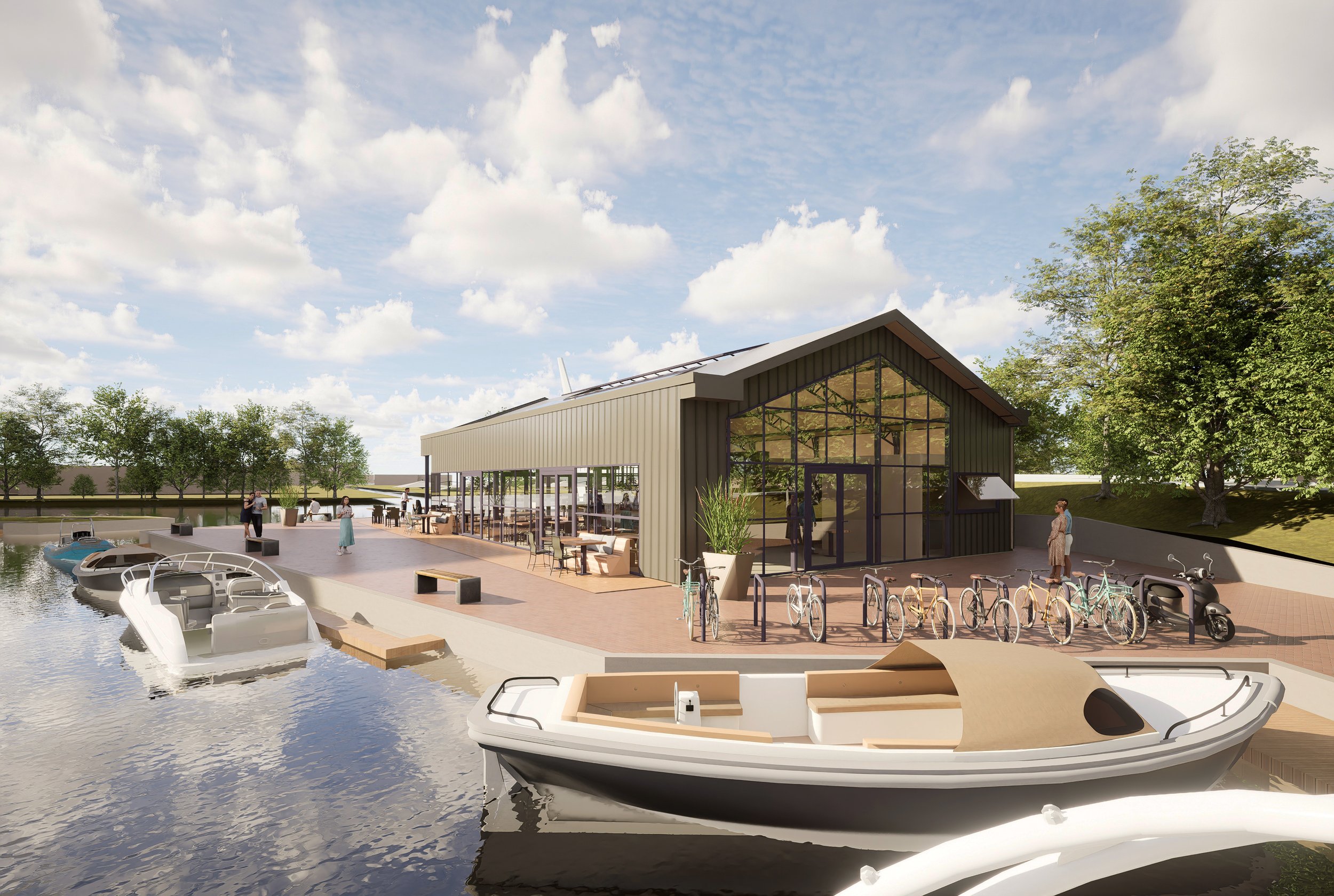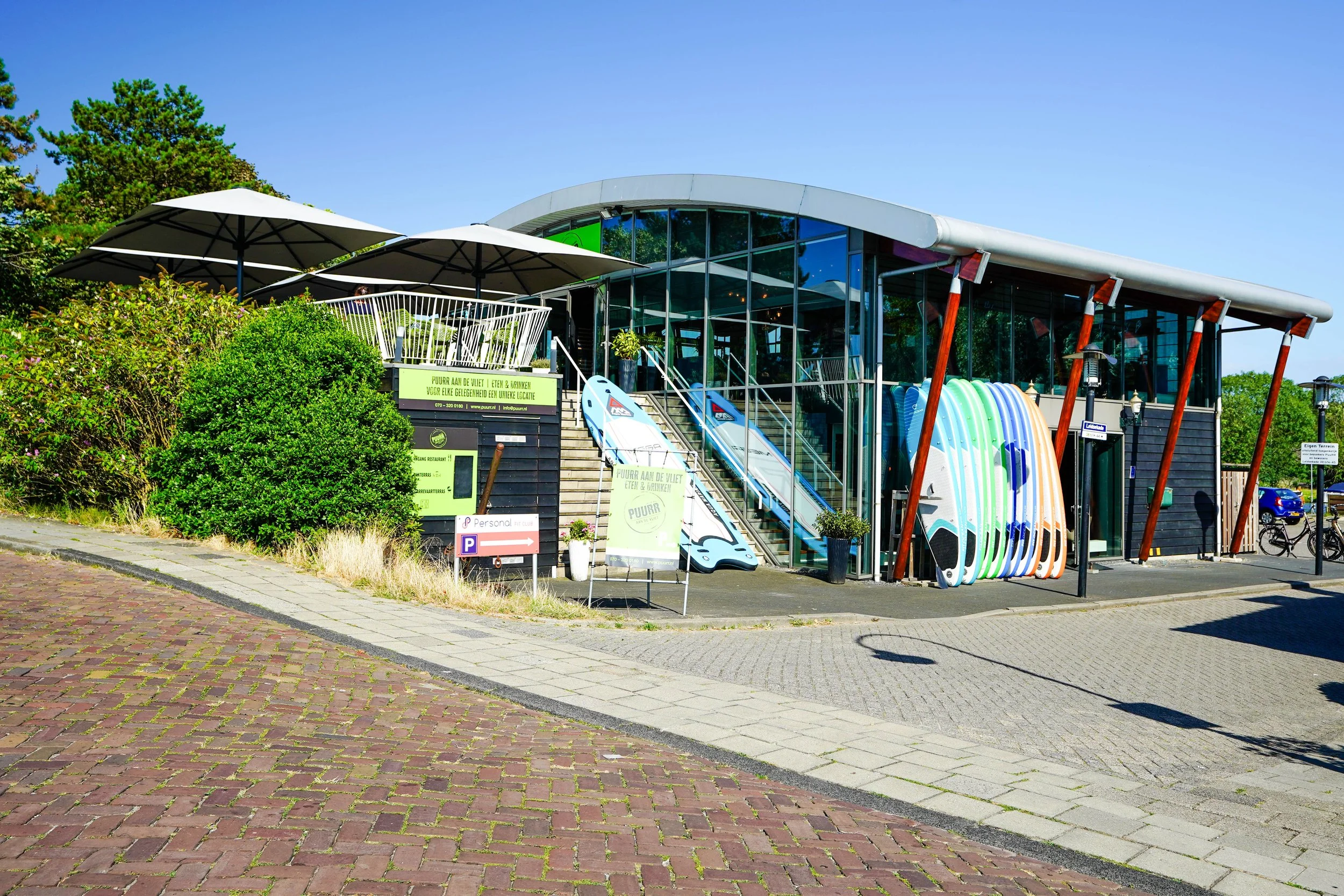 Bij PuuRR aan de Rijn stap je op direct naast de Joop van der Reijdenbrug, aan de rustige waterkant van Oegstgeest. Het is een overzichtelijke en ontspannen opstapplek waar je zo de Kaag‑ en Leidse wateren op vaart.